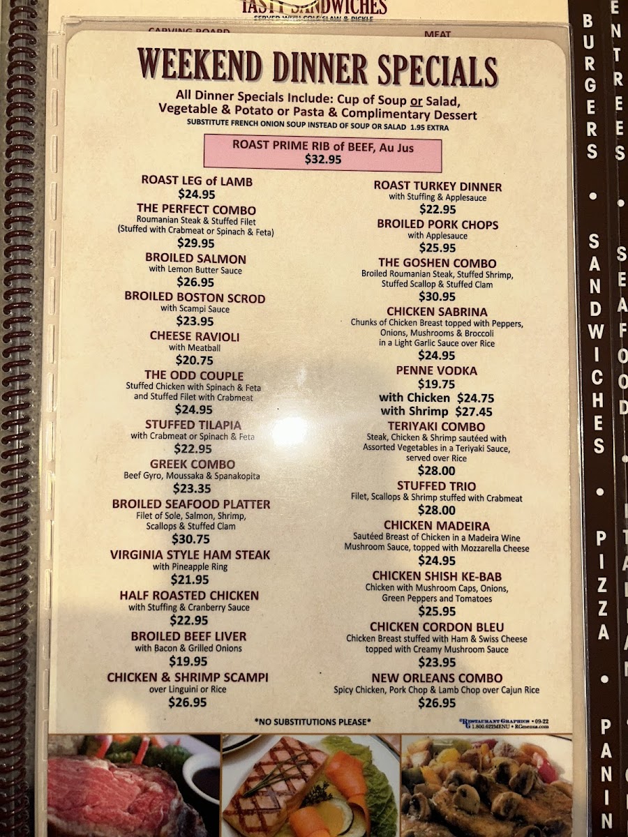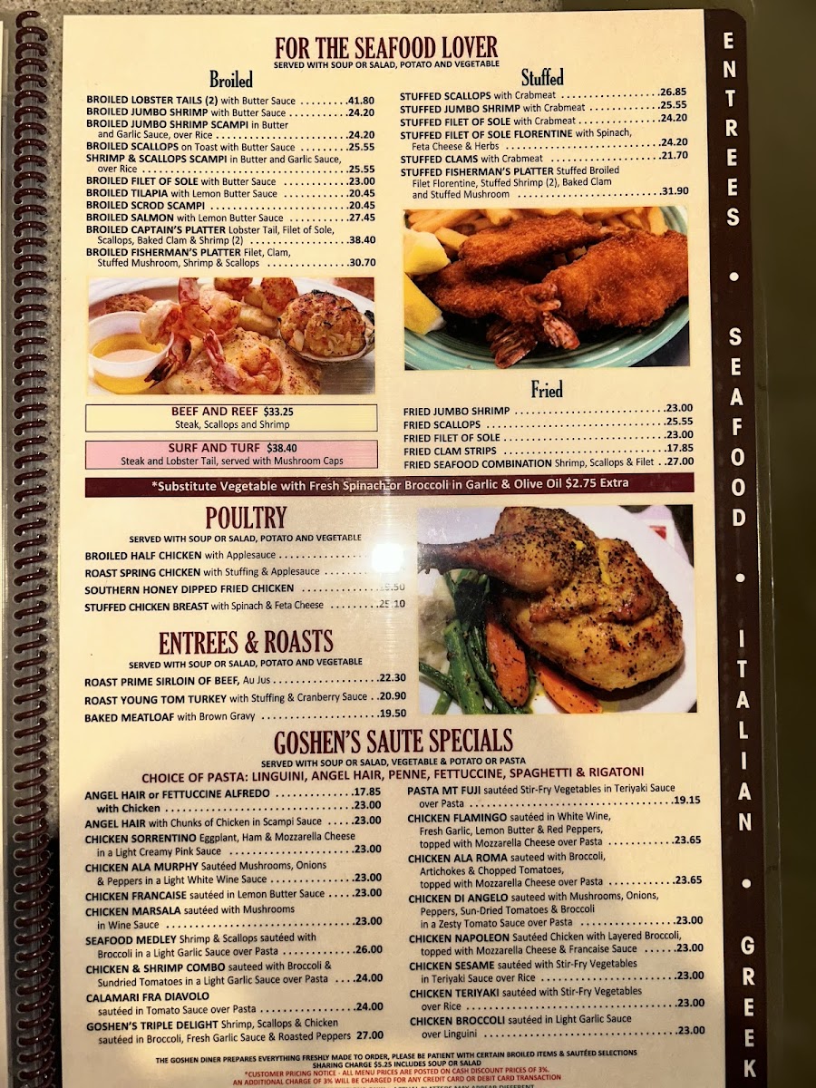 Goshen Plaza Diner Menu